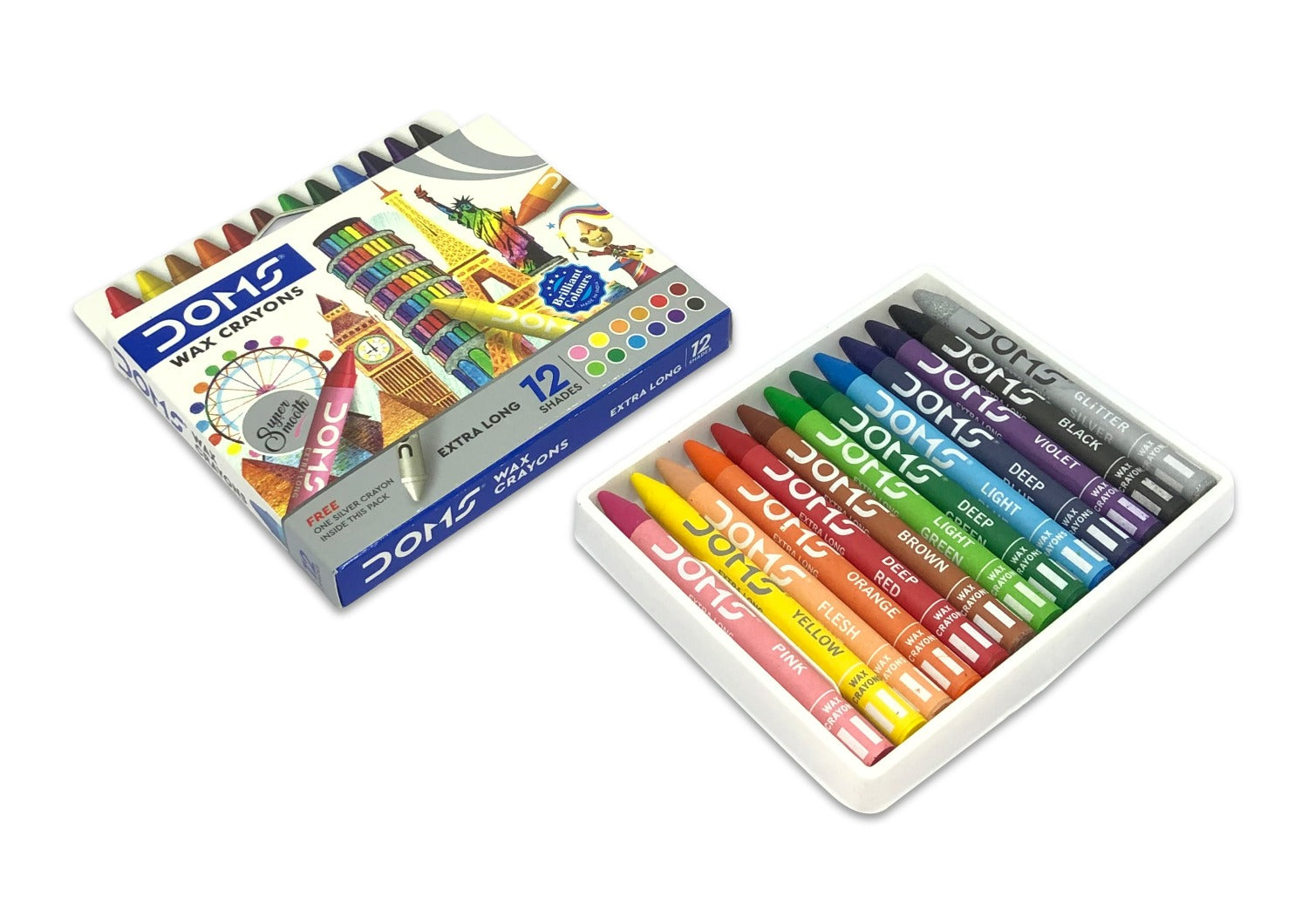 Doms Extra Long Wax Crayons is the brightest 12 colour extra long wax crayons. These are safe colouring told that inspire sharp minds to create their own Masterpieces. 12 vibrant shades enable sharp minds to develop self-expression. Build motor skills. Color recognition and grip control coordination.