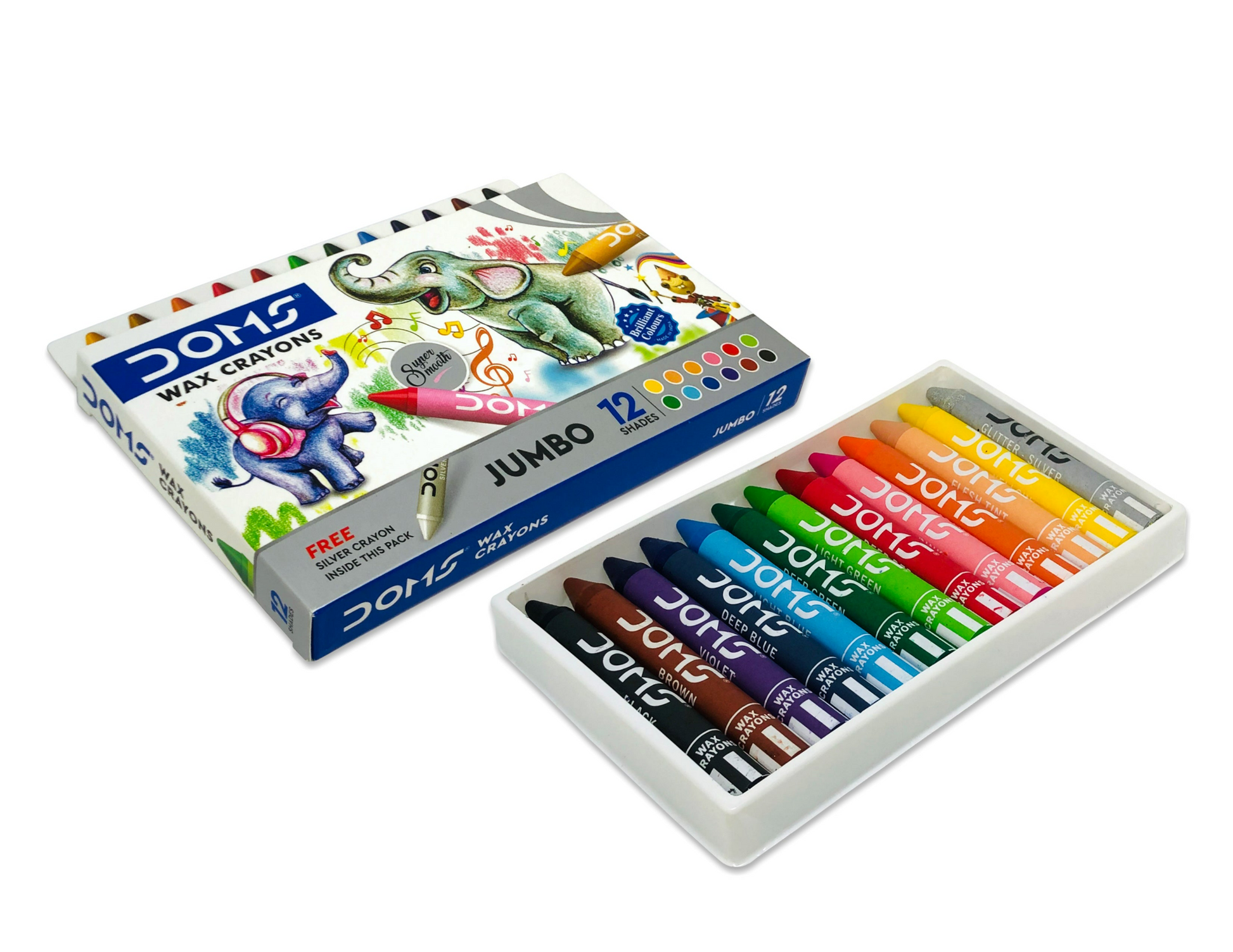 DOMS JUMBO WAX CRAYONS are safe coloring tools that inspire shape minds to create their own masterpieces. 13 shades enable sharp minds to develop self-expressions build motor skills color recognition and grip control coordination.