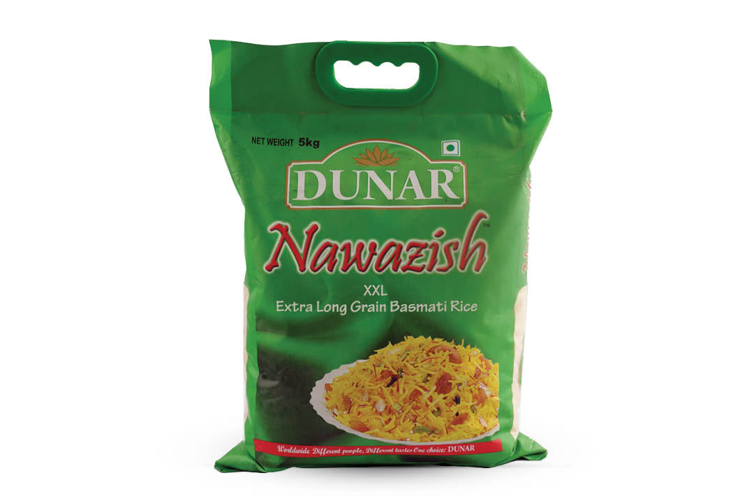Dunar Nawazish is a household name, carrying one of IndiaÕs best known 1121 steam rice offerings. The consistency of the grains and the excellent elongation upon cooking make it the best, most preferred choice for special dishes. The slender, fluffy and non-sticky grains mean that it is perfect for personal use as well as for hotels, restaurants, catering (HoReCa) and other bulk uses.
