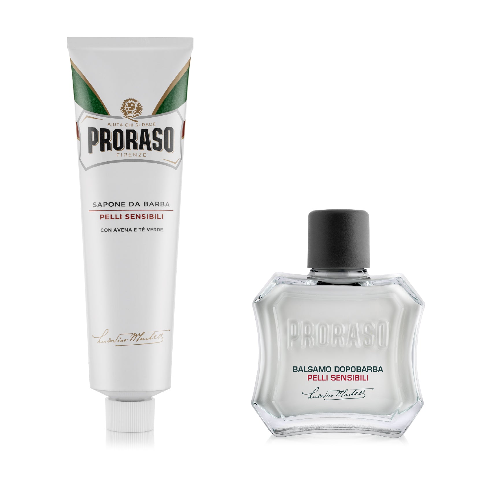 This value bundle includes the two full-sized daily essentials for the classic Proraso Shave at home, all in the Sensitive Formula, with Oatmeal and Green Tea Extract, for sensitive skin or skin prone to redness or irritation.